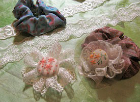 シュシュに縫い付けるか後ろにブローチピンを付けるか