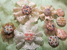 当日は会場では用意していたヴィンテージコットンをお客様に選んでいただいてくるみぼたんを作り、
