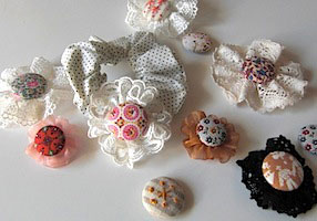 当初はその場で刺繍をしてその記事をくるみぼたんにする